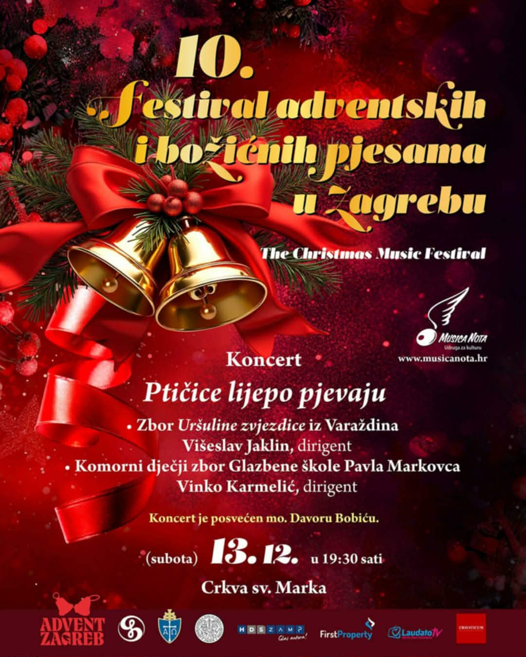 Koncert će Uršuline zvjezdice održati u sklopu zagrebačkog 10. festivala adventskih i božićnih pjesama, koji je započeo 30. studenoga i traje sve do 19. prosinca. Večerašnji koncert posvećen poznatom varaždinskom skladatelju Davoru Bobiću, a dirigent je Višeslav Jaklin.