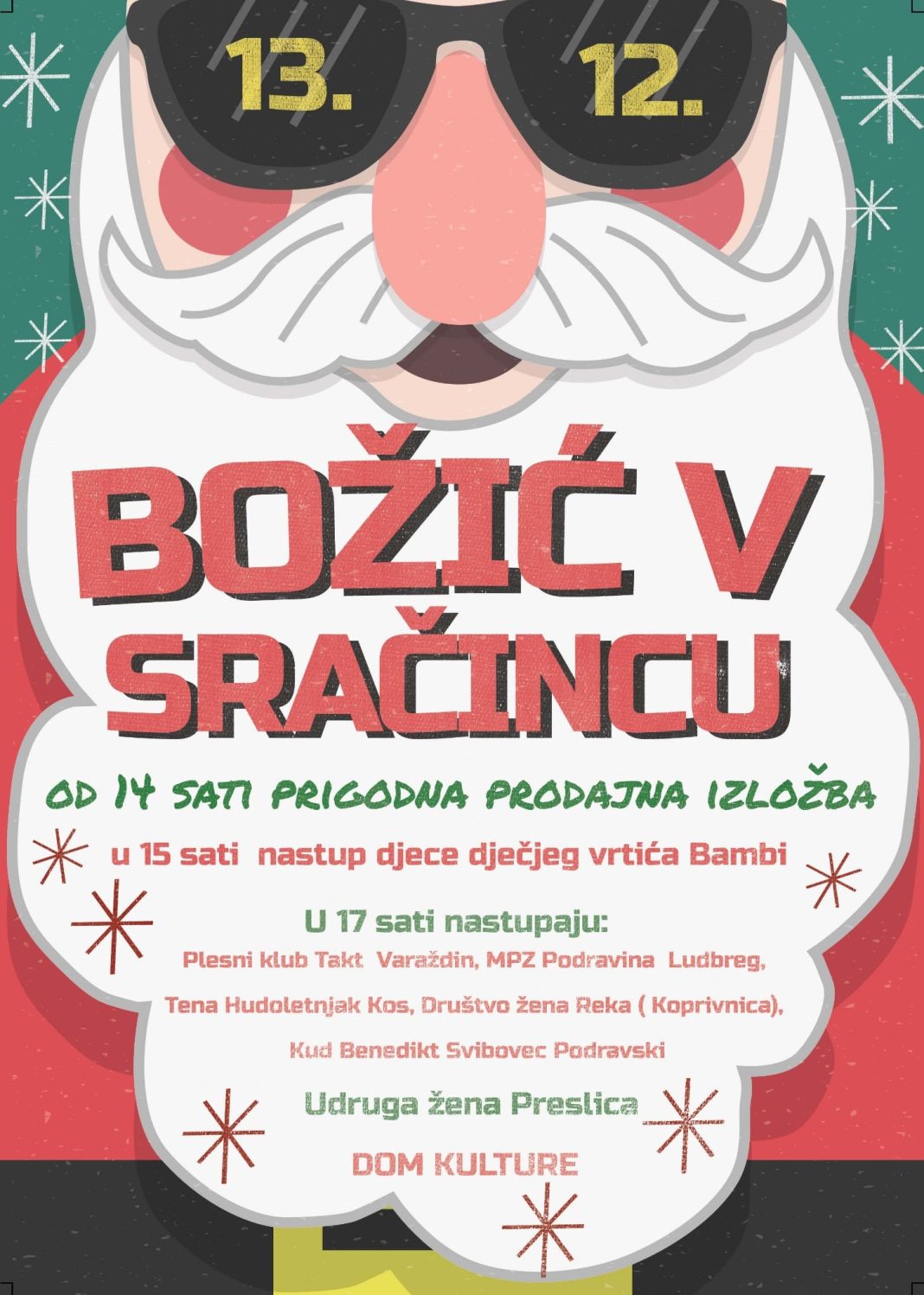 U subotu, 13. prosinca, u Sračincu se održava tradicionalna manifestacija “Božić v Sračincu”, koja okuplja udruge, izvođače i posjetitelje svih generacija. Događanje se održava u Domu kulture, a organizatori iz Udruge Preslica i ovaj su put pripremili raznovrstan program, izvijestili su iz Općine Sračinec.